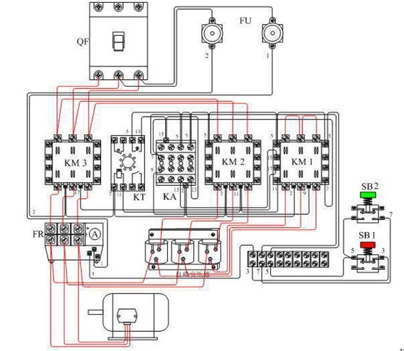 1、空載實驗;拆下熱繼電器FR與電動機端子的聯(lián)接線,接通電源,按下SB2起動KM1與KM2和動作吸合,KM3與KA不動作。時刻繼電器的整定時刻到,KM1和KM2釋放,KA和KM3動作吸合切換正常,重復實驗幾次查看線路的可靠性。
